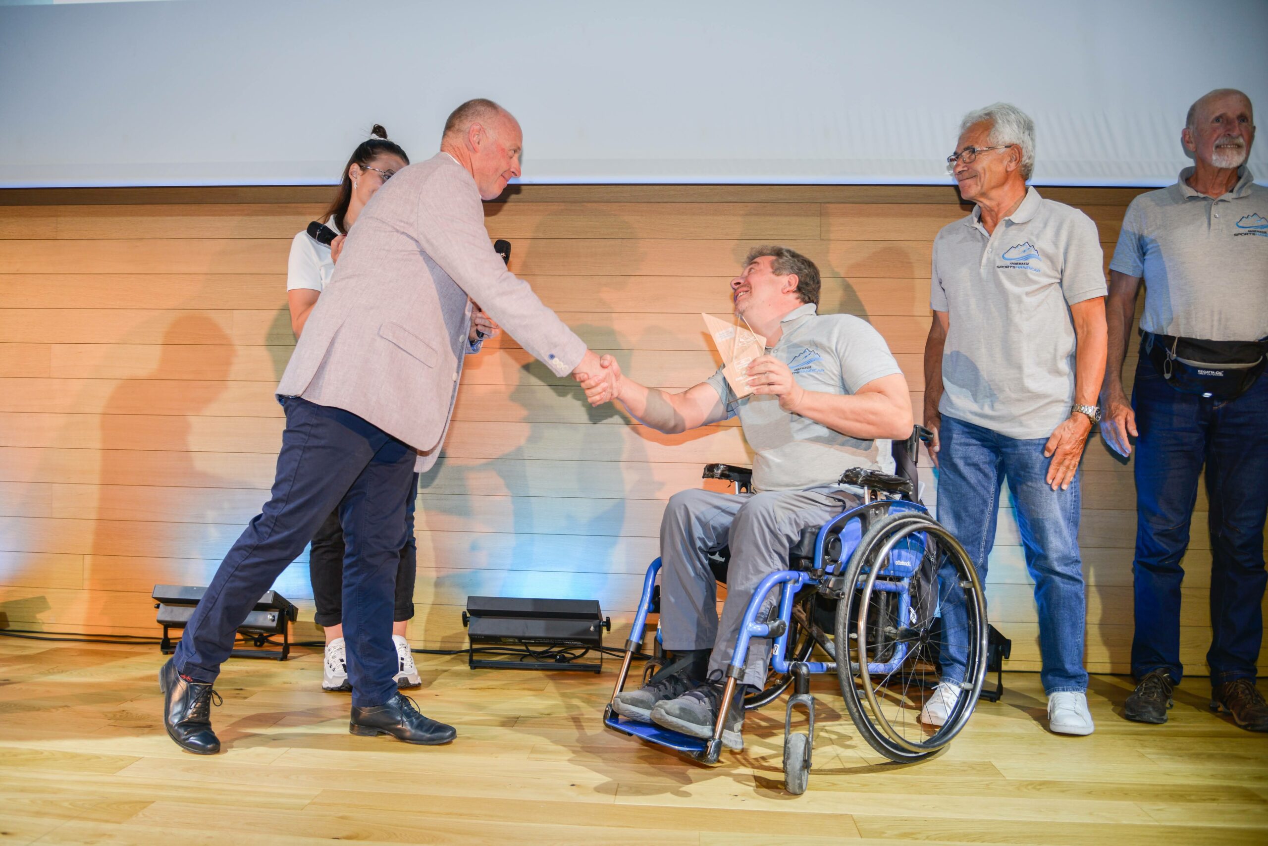 - Le lauréat du prix emblématique n°1 de cette thématique est l’association Annemasse Sports Handicap : « Il est souvent difficile voire impossible pour les personnes en situation de handicap de pouvoir partager des activités sportives en pleine nature. Notre association vient de recevoir le label club handisport pour les activités randonnées-FTT il n’existe que 11 clubs au niveau ayant cette compétence. Cela démontre que nous avons des bénévoles formés mais nous incite surtout à rechercher des moyens supplémentaires pour mettre pleinement en oeuvre cette activité. » Olivier Matringe, association Annemasse Sports Handicap.