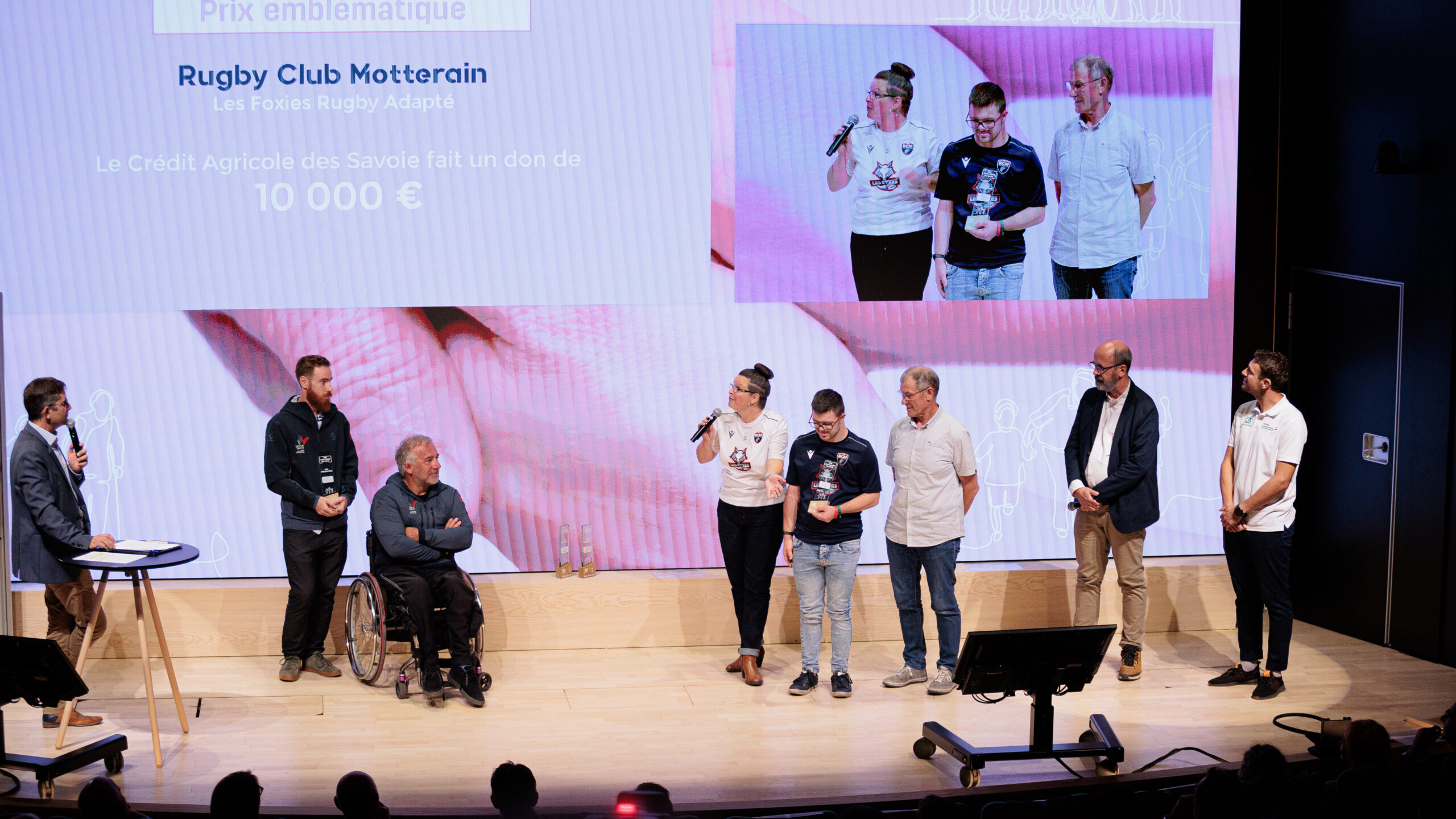 « Nous proposons la pratique du rugby à un public de joueurs/euses porteurs d’un handicap cognitif et/ou psychique. En faisant vivre une section au sein du club leur permettant de pratiquer, de découvrir ou de perfectionner leurs acquis rugbystiques en toute sécurité, avec un groupe d’encadrant bénévoles et passionnés. » Christelle DUVINAGE, Rugby Club Motterain