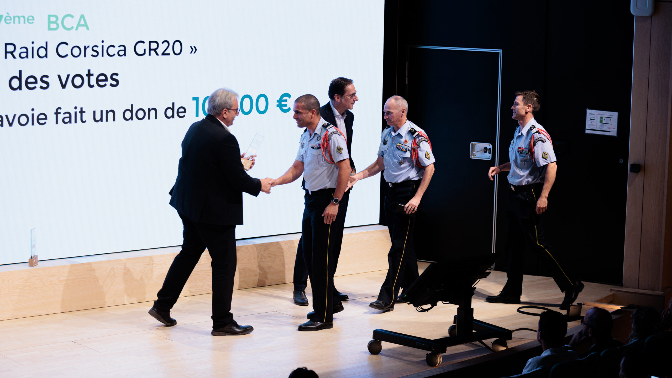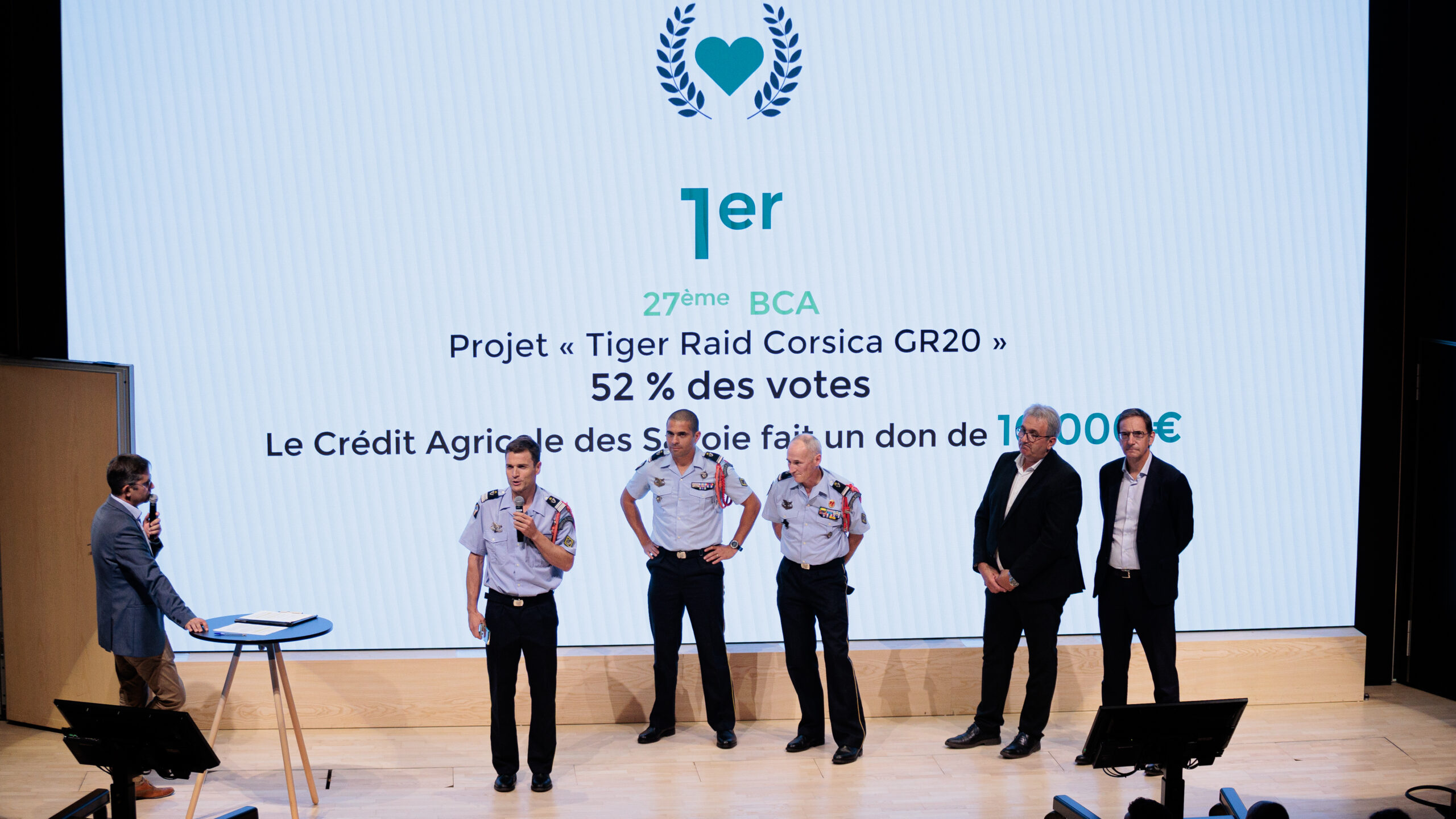 - Le lauréat du prix « coup de cœur » du public n°1 est le 27ème bataillon de chasseurs alpins, avec le projet « Tiger Raid Corsica GR20 » : « Le TIGER RAID est un concept de raid/trek exigeant mis en place dans le cadre de la reconstruction par le sport de soldats de montagne blessés physiques ou/et psychiques en opérations extérieures, intérieures ou en montagne. Une organisation sportive favorisant la cohésion, l’entraide et la reprise de confiance en soi. Pour cela, un groupe de 20 personnes, 10 blessés et 10 accompagnateurs spécialisés se lanceront à l’assaut du GR20 Corse du 16 au 27 septembre 2024.» Hakim MERZOUGUI, 27e Bataillon de Chasseurs Alpins