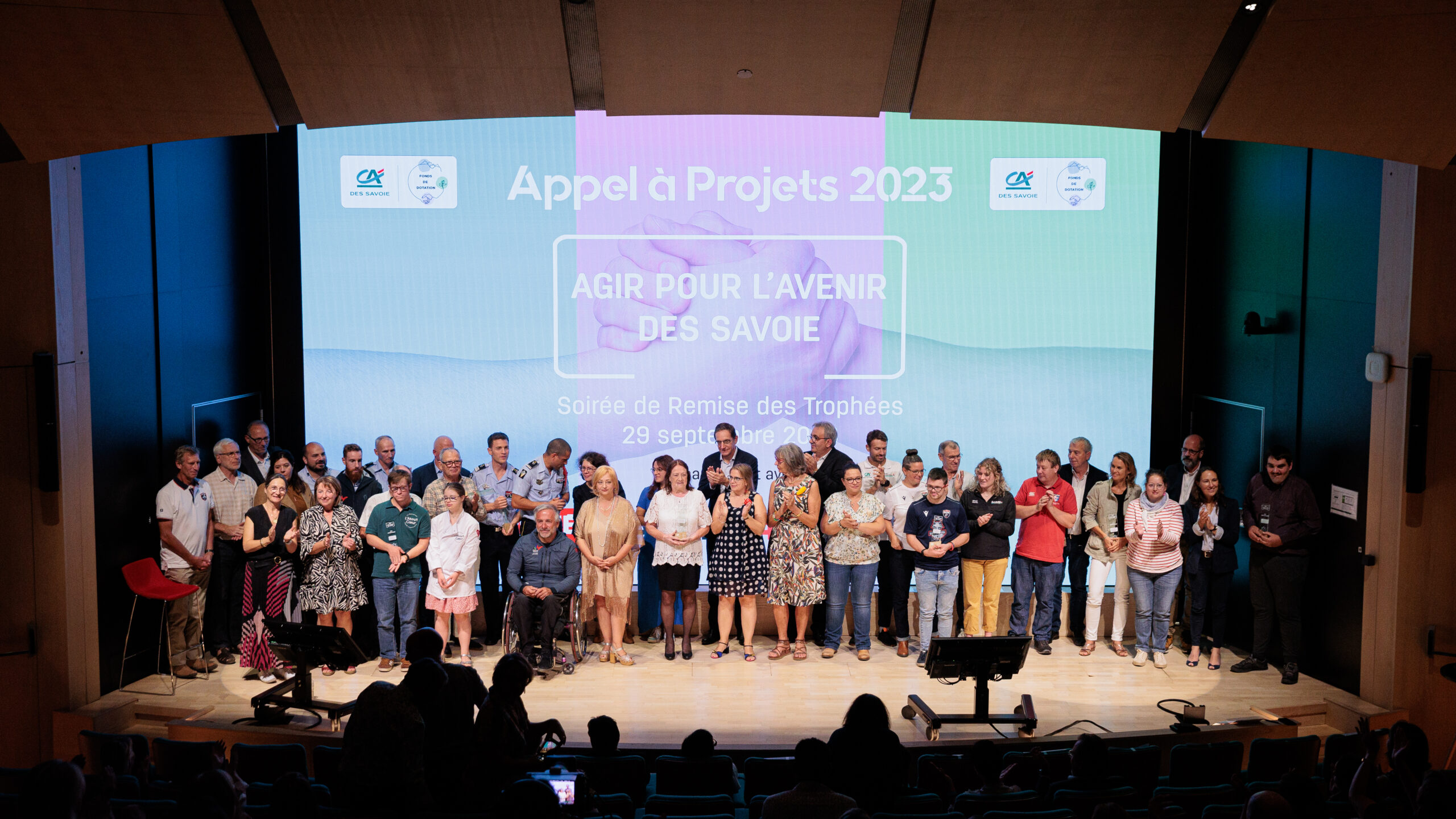 Le 29 septembre, lors de la cérémonie annuelle de clôture de l’Appel à Projets « Agir pour l’Avenir des Savoie », 12 projets du territoire ont été récompensés par le Crédit Agricole des Savoie, en présence de Laurent Bennet, Directeur Général, et d’Eric Vial, Président de la Caisse Régionale.