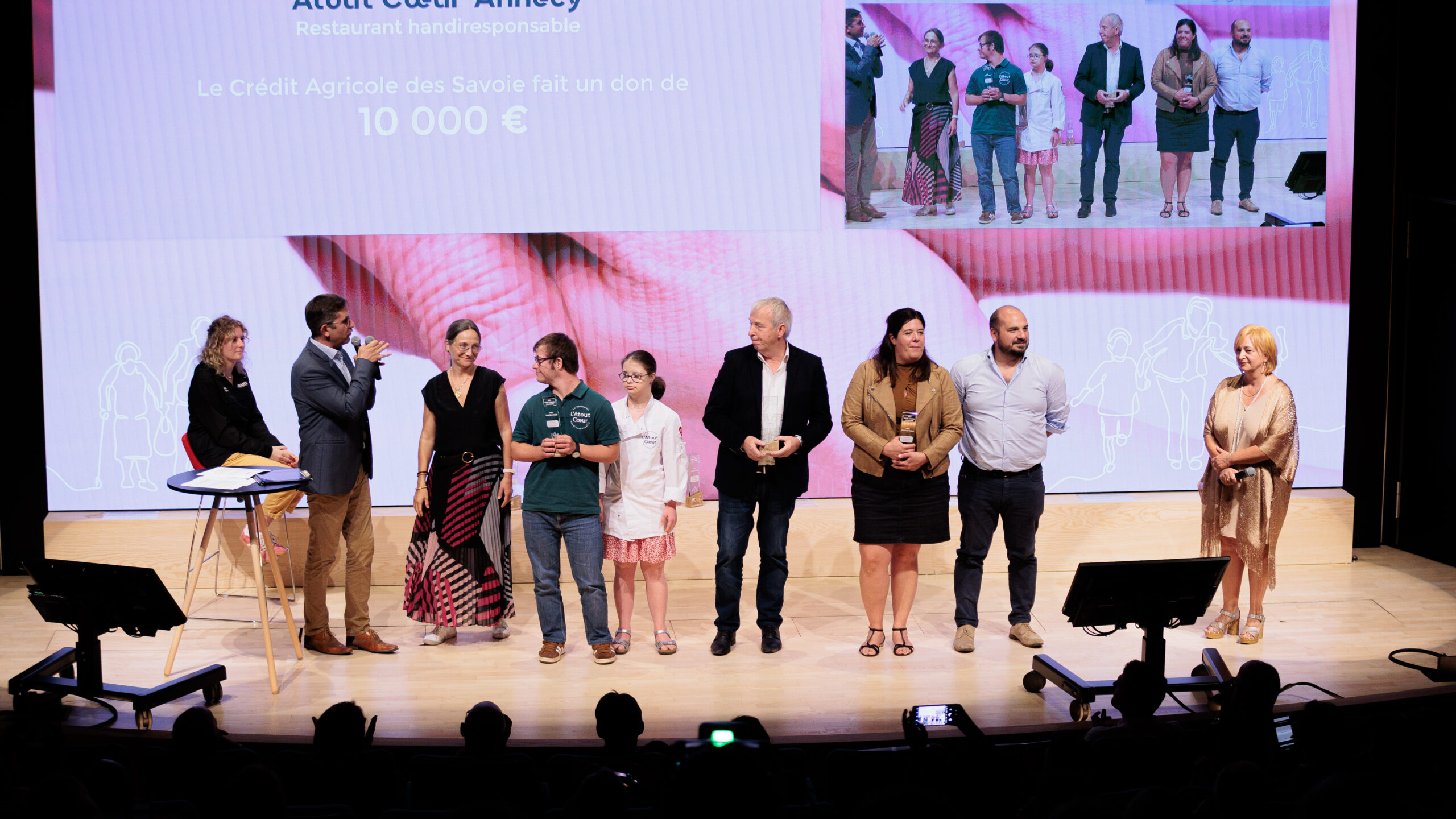 « Le projet consiste en la création d’un restaurant employant en majorité des personnes en situation de handicap mental. Le restaurant emploiera entre 8 à 10 personnes en situation de handicap à mi-temps soit 4 à 5 ETP. L’objectif est de servir une cuisine bistronomique à une clientèle de quartier. La restaurant accompagnera les salariés dans la consolidation des acquis et leur montée en compétences pour favoriser un parcours professionnel. » Marie Bénédicte Tessier, Déléguée Générale Atout Cœur-Annecy