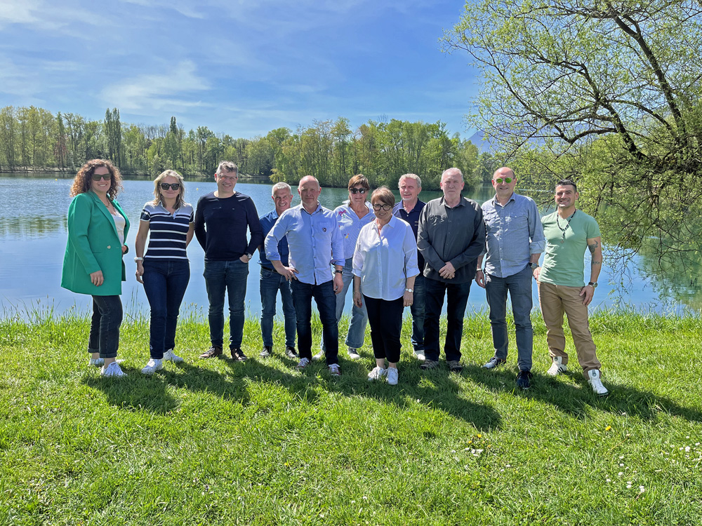 Photo de groupe des administrateurs et collaborateurs au bord du lac de Grésy-sur-Isère