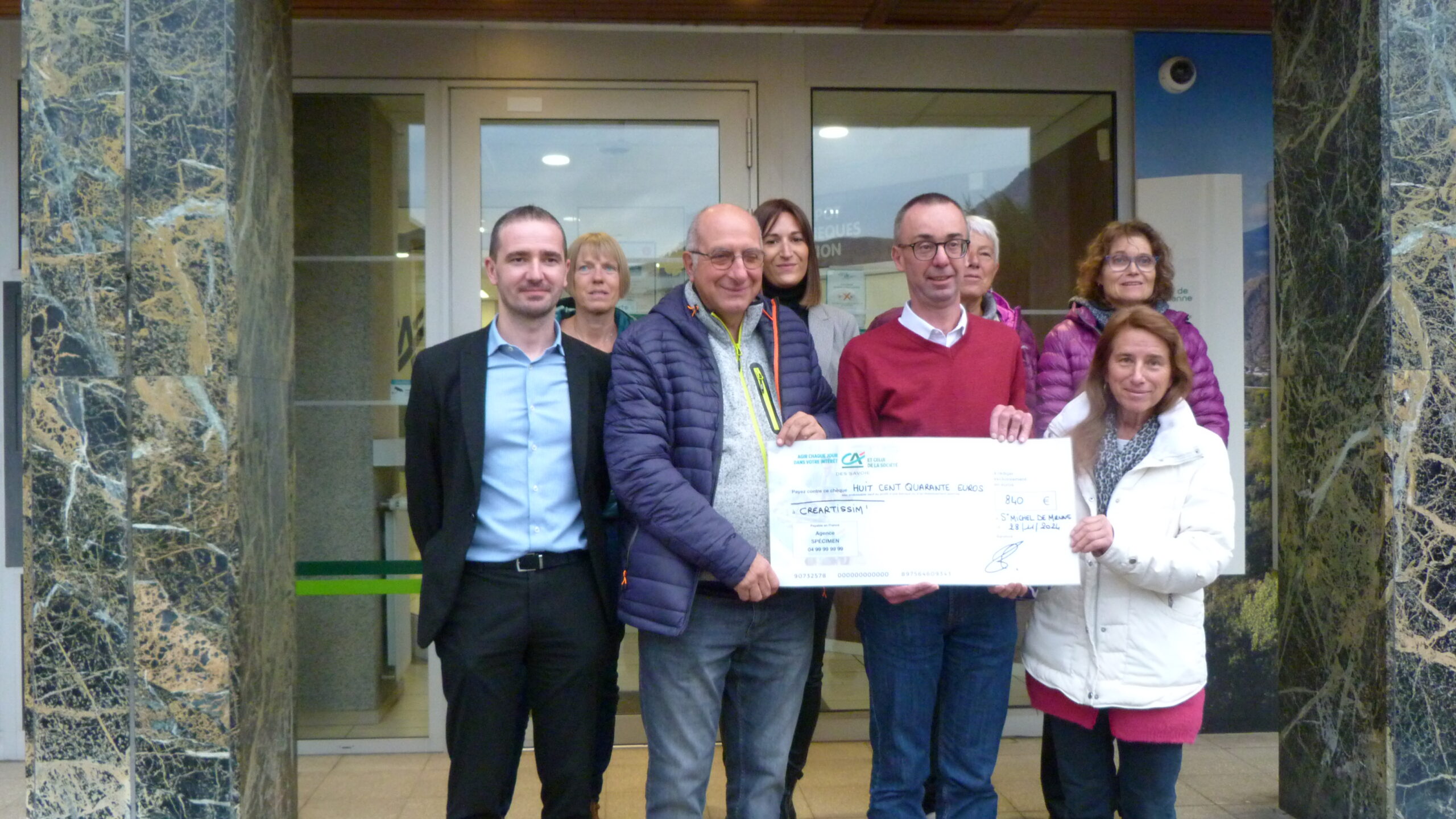 Dans le cadre de la semaine du sociétariat, la Caisse Locale de St Michel de Maurienne a témoigné de son engagement en faveur du tissu associatif local. Les administrateurs ont remis à l’association CREARTISSIM’ un chèque de 840 euros, grâce au dispositif de soutien aux associations.