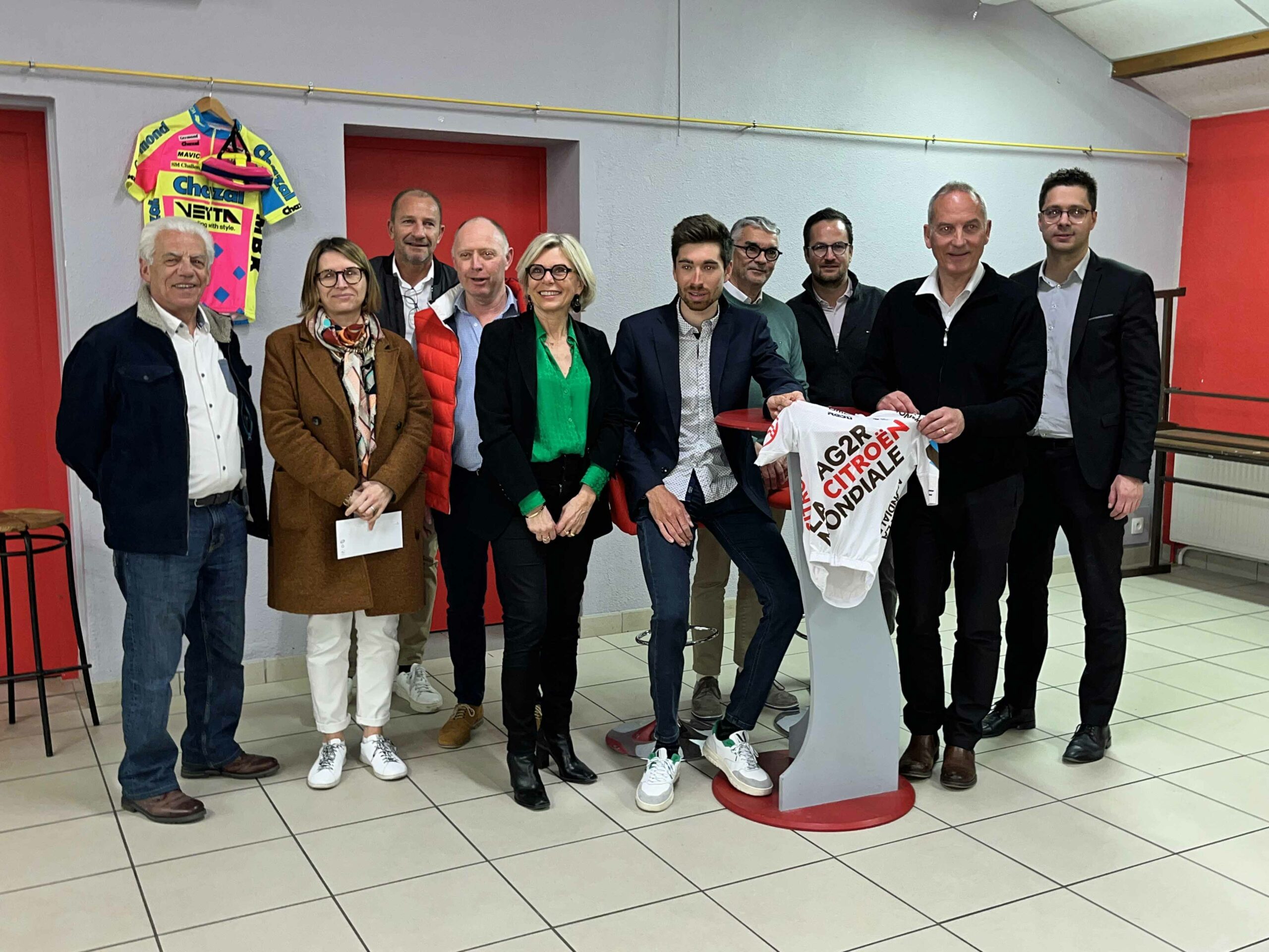 Brièvement présenté par Mme Véronique Laubé (Directrice de la Région du Bassin Genevois au Crédit Agricole), il a répondu sans détours aux questions des invités du Crédit Agricole, tous passionnés de cyclisme en particulier et de sport en général. Des échanges fort intéressants qui ont permis au natif d’Annemasse d’évoquer son parcours au sein du Vélo Club de la ville frontalière, puis d’aborder beaucoup plus en détail son quotidien de sportif professionnel. De ses plans d’entraînement à la vie d’équipe en passant par la rigueur qui l’accompagne au jour le jour (30 000 km par an), Aurélien Paret-Peintre n’a éludé aucune question, notamment sur les soupçons de dopage « mécanique » qui préoccupent les plus hautes instances du cyclisme international. Il a aussi levé un coin du voile sur l’organisation d’une équipe (AG2R-Citroën), au budget annuel de 26 millions d’Euros qui fait vivre 80 personnes (coureurs et personnel d’encadrement compris) et qui évolue au plus haut niveau. Il a également parlé de ses ambitions qui se porteront essentiellement cette année sur le Tour d’Italie (6-28 mai) en passant par Paris-Nice (5-12 mars) le Critérium du Dauphiné (4-11 juin) et vraisemblablement du Tour de France (1er–23 juillet). Pour l’heure, il effectuera sa rentrée officielle ce week-end lors du Tour des Alpes maritimes et du Var.