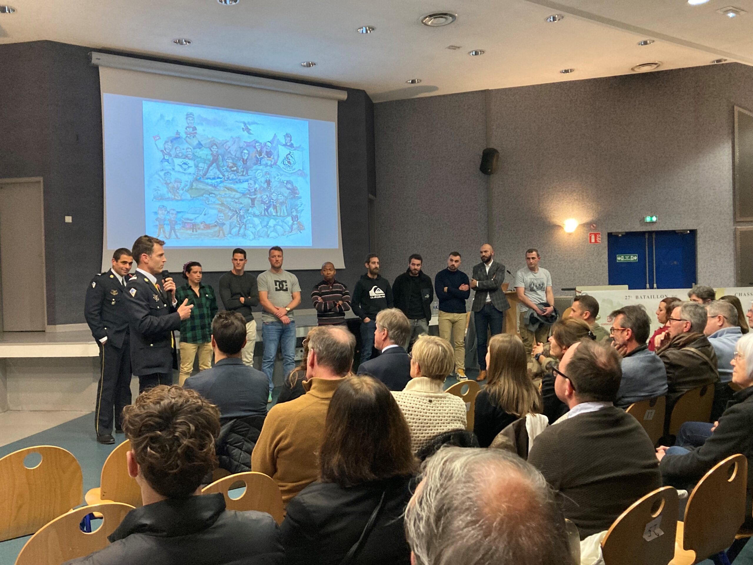 L’exploit sportif du TIGER RAID CORSICA a été l’occasion pour ces soldats de lever un fonds solidaire. La soirée organisée par le 27ème BCA le 28 novembre dernier dans ses locaux visait à remercier tous les soutiens qui ont contribué au financement du projet. Les participants au raid et les équipes internes qui ont rendu possible cette aventure humaine ont été présentés aux partenaires qui ont échangé avec eux lors d’un moment convivial et riche en émotions avec notamment la projection du film retraçant tous les moments forts du Tiger Raid.