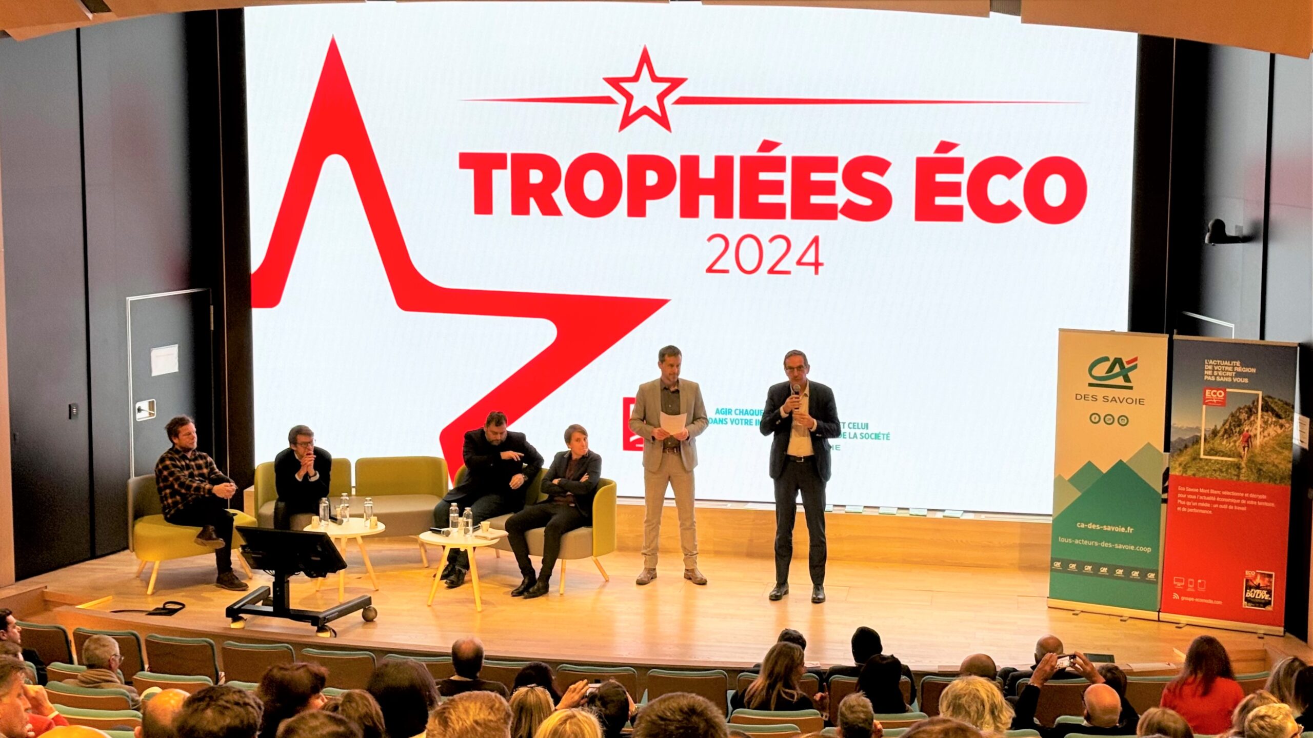 Animée par Eric RENEVIER, rédacteur en chef d’Eco Savoie Mont Blanc, la soirée a débuté par un mot d’accueil de Laurent BENNET, Directeur Général du Crédit Agricole des Savoie, et s’est déroulée dans l’auditorium du siège CADS à Annecy Le Vieux.